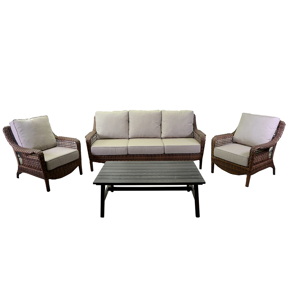 Das hochwertige synthetische Rattan ist mit einem braunen Finish versehen, das natürliches Rattan imitiert und Ihrem Garten oder Ihrer Terrasse einen Hauch von Wärme und Raffinesse verleiht. Die cremefarbenen Stoffkissen sind nicht nur stylisch, sondern auch bequem, perfekt für lange entspannende Stunden mit Familie und Freunden.