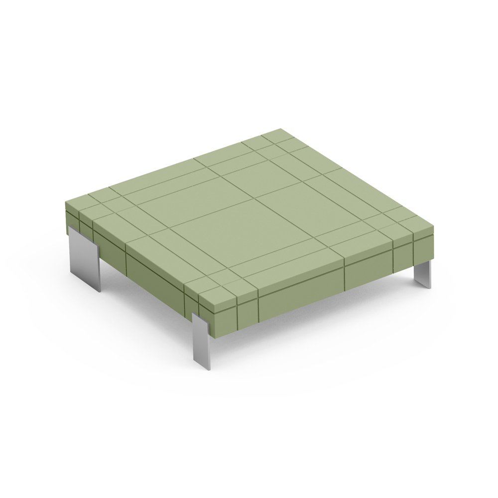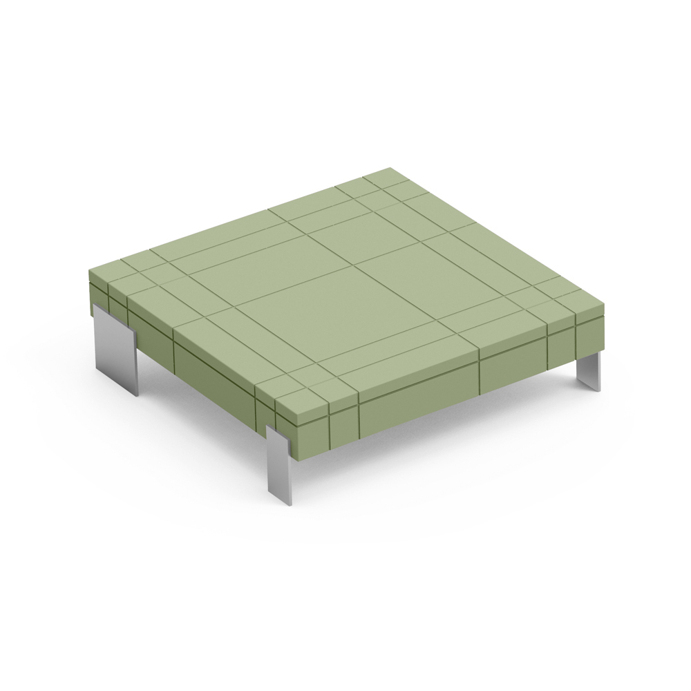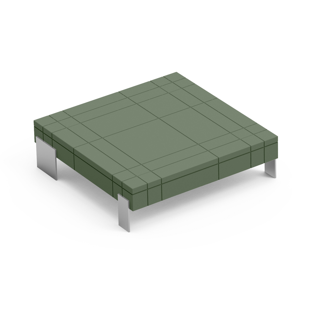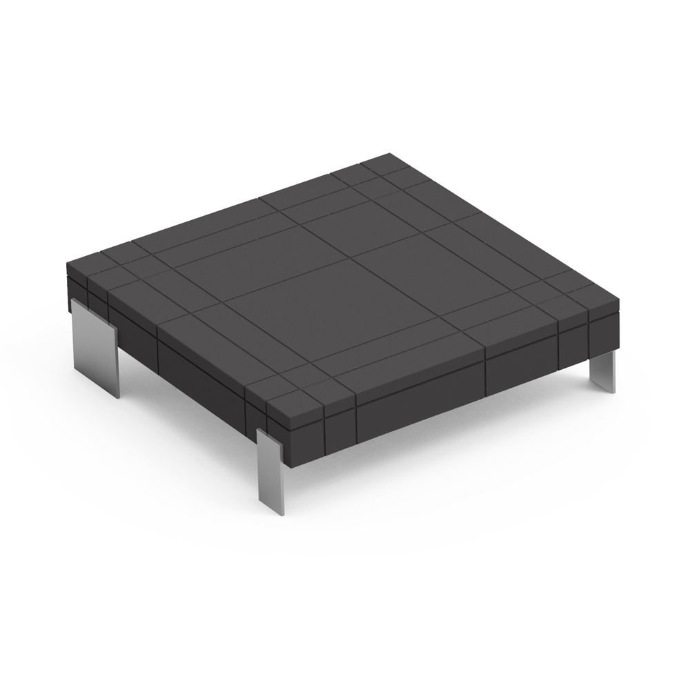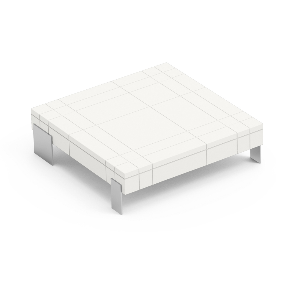 Couchtisch mit Polyethylenstruktur und Metallfüßen.