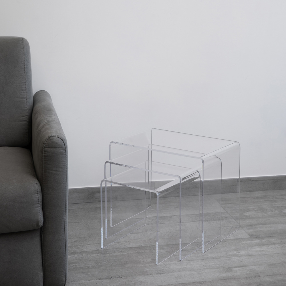 Triptychon Couchtische aus transparentem Acrylglas, hergestellt in Italien.