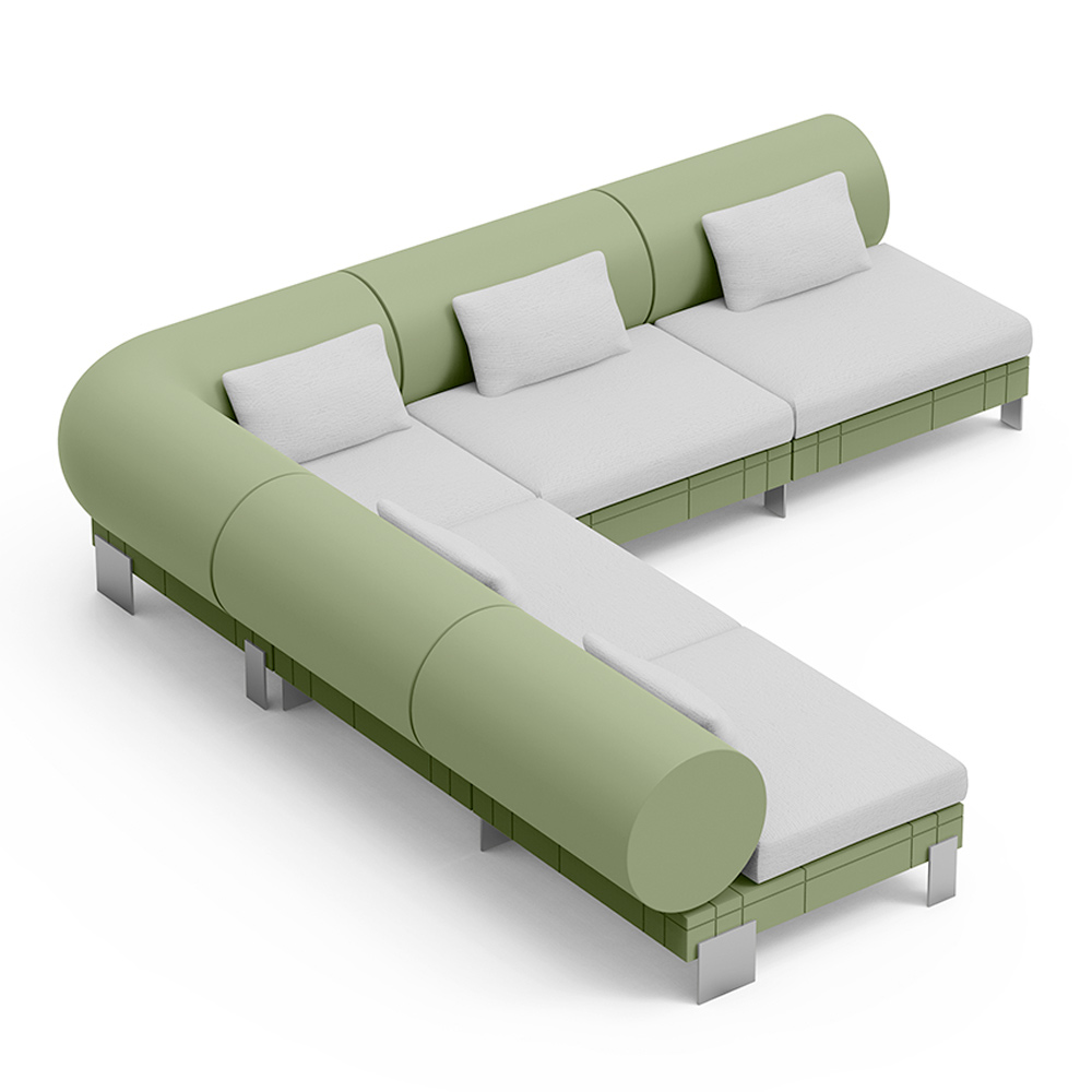 Dieses moderne Sofa vereint Komfort und modernes Design in einem aufmerksamkeitsstarken Möbelstück. Das Sofa zeichnet sich durch klare Linien und eine innovative Form mit seitlichen Zylindern aus und bietet einen Hauch von einzigartigem und funktionalem Stil . Seine Farbpalette bringt ein Element von Helligkeit und Frische in jeden Wohnraum.