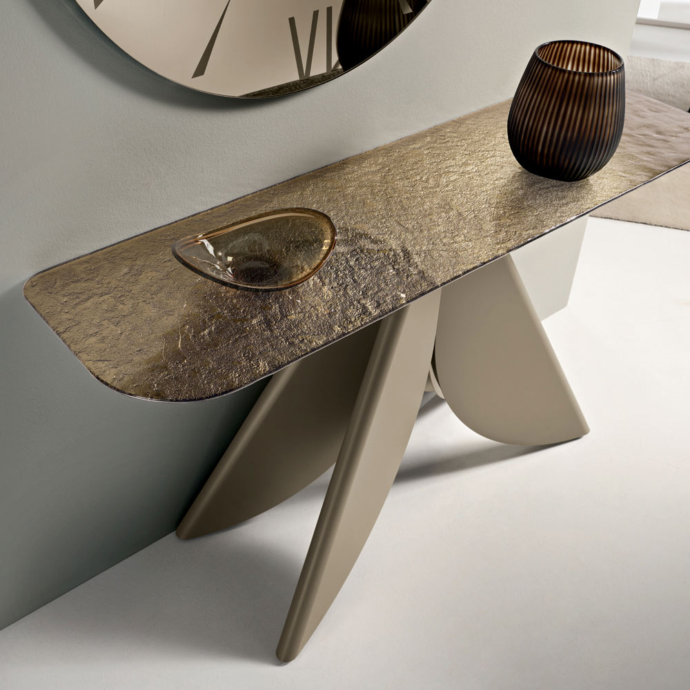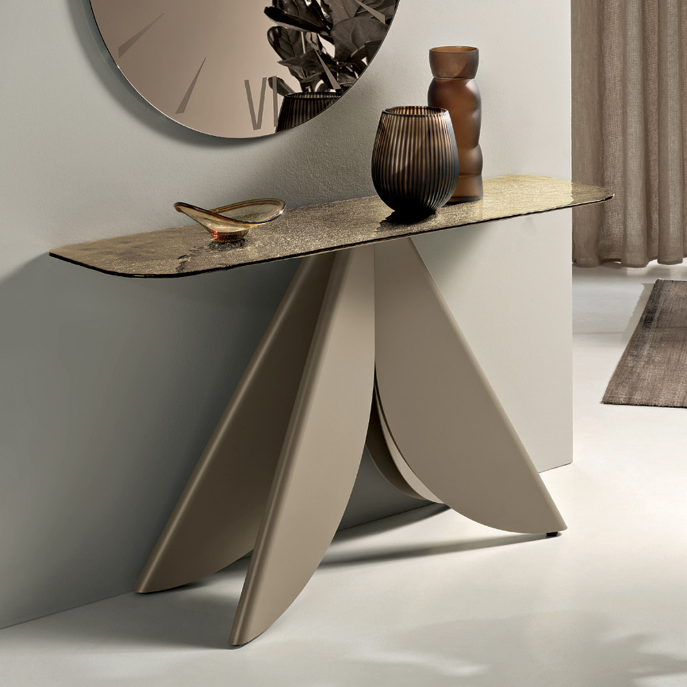Ein eleganter, in Italien gefertigter Designer-Konsolentisch , ideal für die stilvolle Einrichtung von Eingangsbereich , Wohnzimmer oder Fluren. Sein modernes Design vereint optische Leichtigkeit mit einer starken Ästhetik und verwandelt ein funktionales Element in ein wahres Dekorationsobjekt.