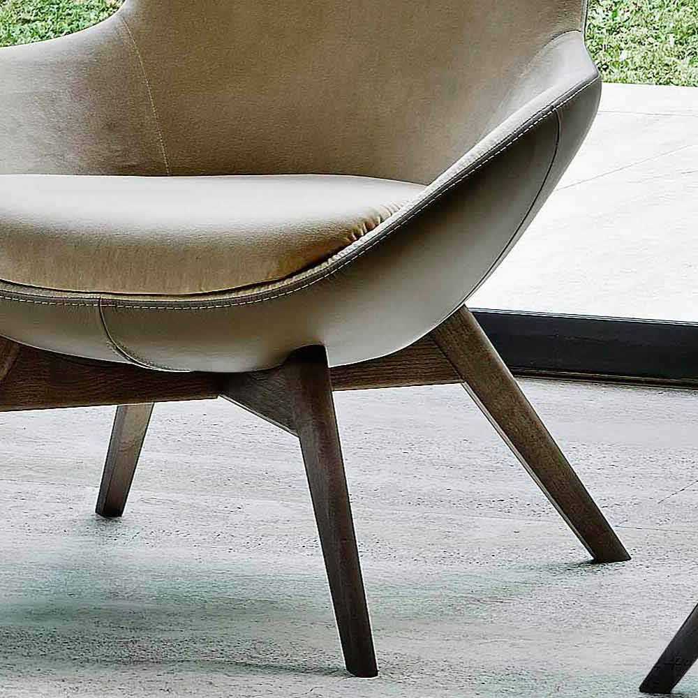 Wohnzimmer Sessel aus Leder und Stoff mit Holzsockel Made in Italy, hohe Qualität.