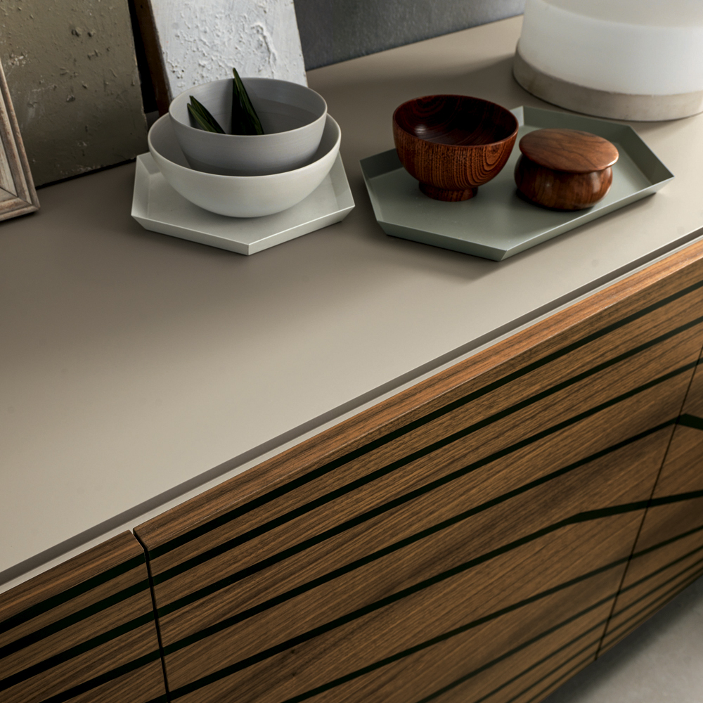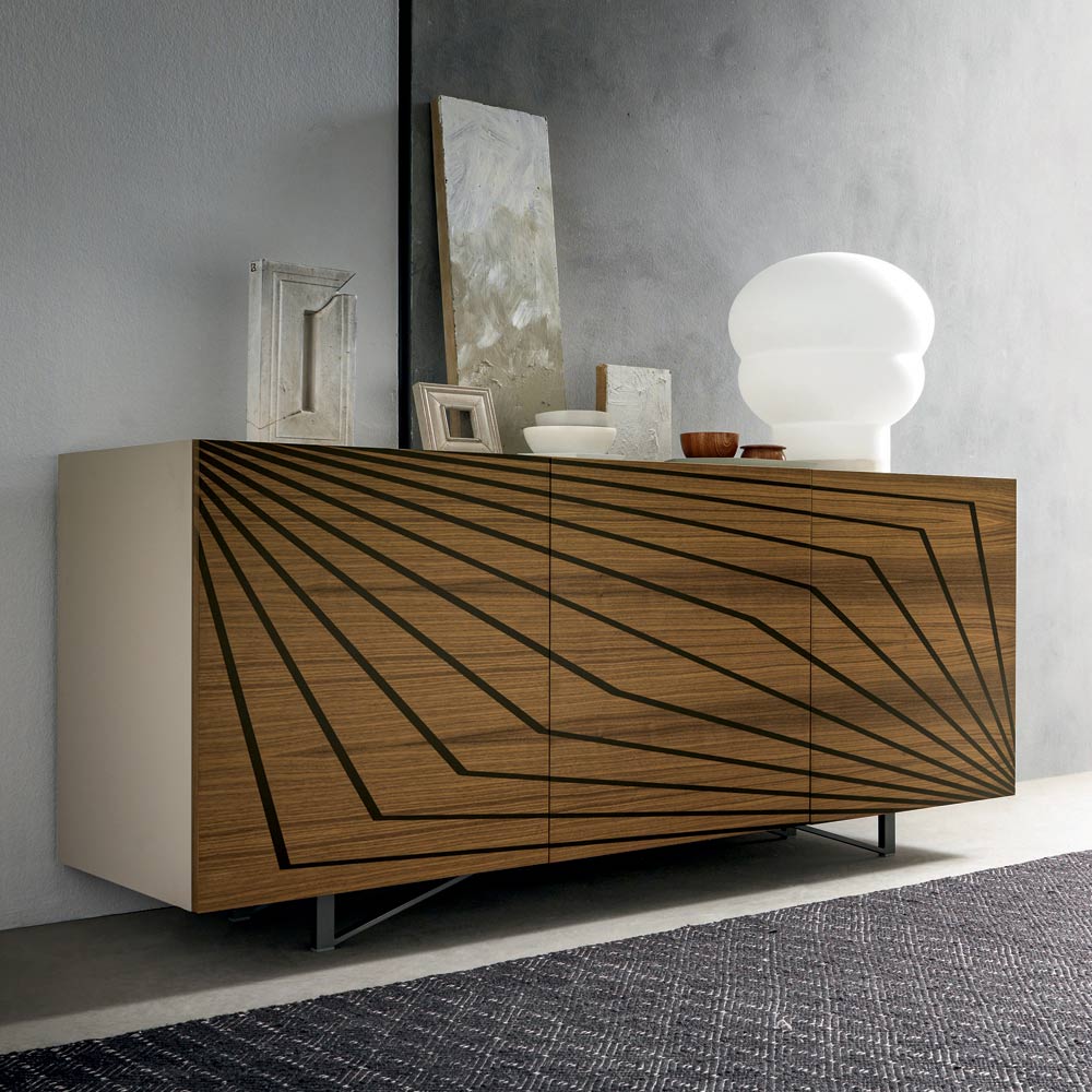 3-türiges Sideboard aus lackiertem MDF mit Siebdruck-Intarsien, Design Made in Italy.