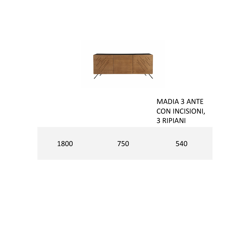 Wohnzimmer-Sideboard mit MDF-Schale und Rückenlehne aus Massivholz 2 oder 3 Türen Made in Italy.