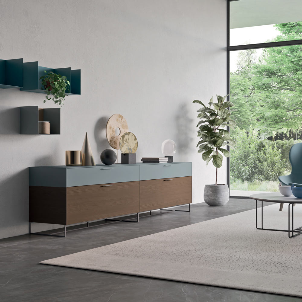 Sideboard für das Design-Wohnzimmer aus zweifarbigem ökologischem Holz 4 Schubladen made in Italy.