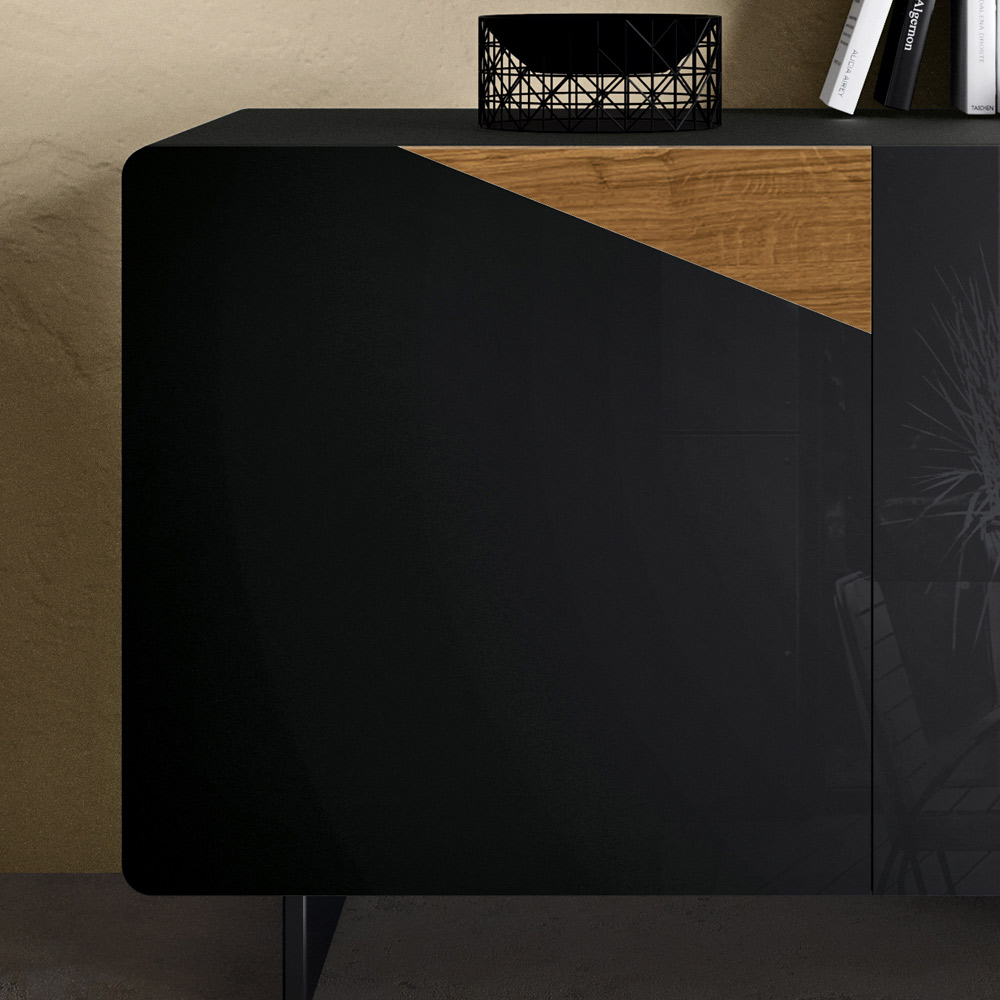 anthrazitfarbenen hinterlackierten Glaseinsätzen, vollständig in Italien hergestellt. Das Produkt ist Teil der neuen Linie moderner Produkte, die mit Respekt vor der Natur hergestellt werden. Dieses elegante Sideboard zeichnet sich durch die Funktionalität und hohe Qualität italienischer Handwerkskunst aus.