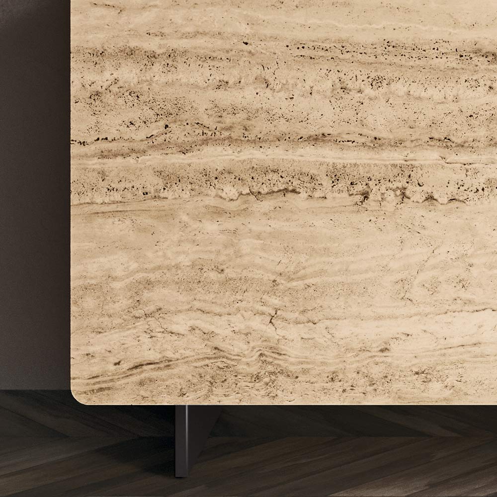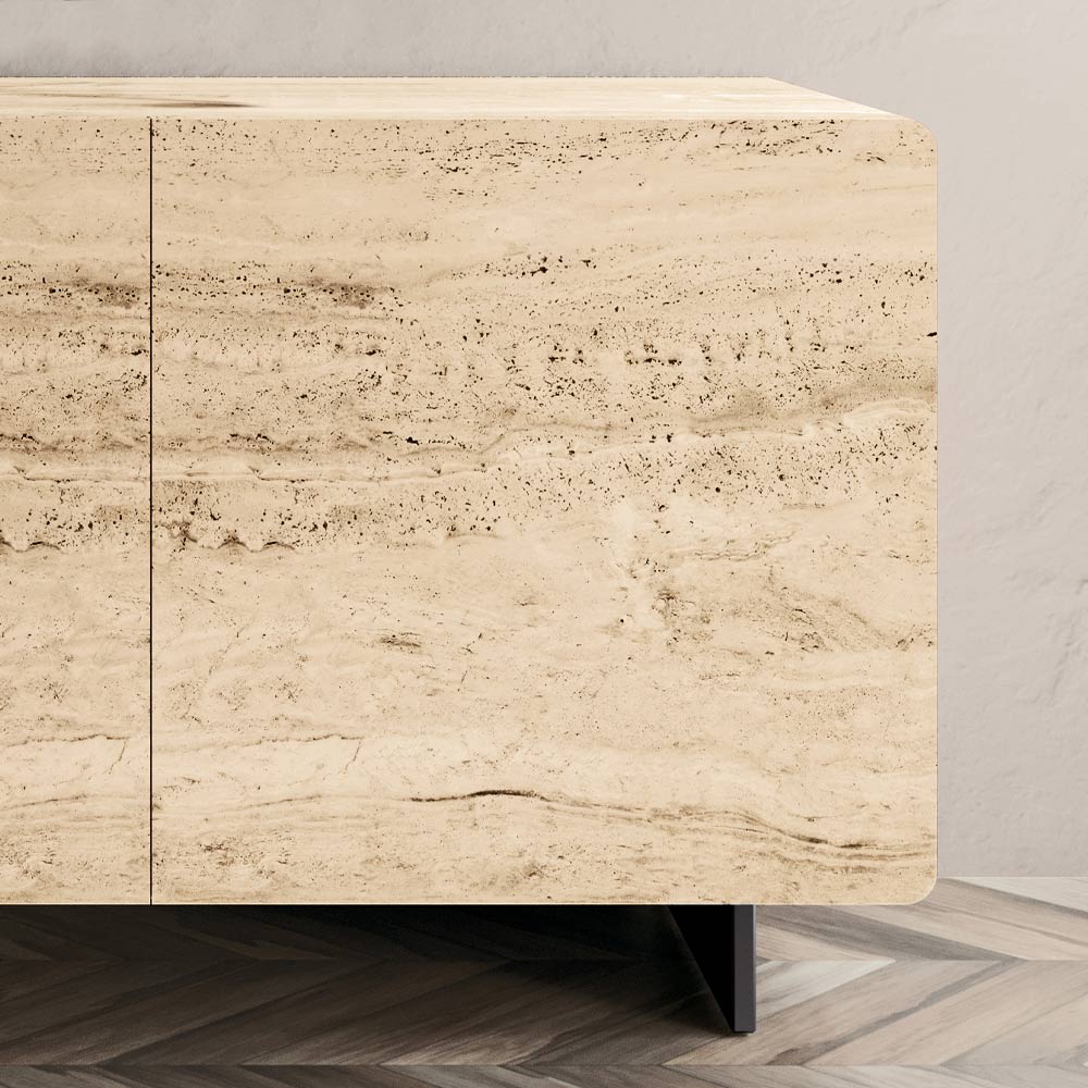 Travertin-Marmor- Finish, vollständig in Italien hergestellt. Das Produkt ist Teil der neuen Linie moderner Produkte, die mit Respekt vor der Natur hergestellt werden. Dieses elegante Sideboard zeichnet sich durch die Funktionalität und hohe Qualität italienischer Handwerkskunst aus.