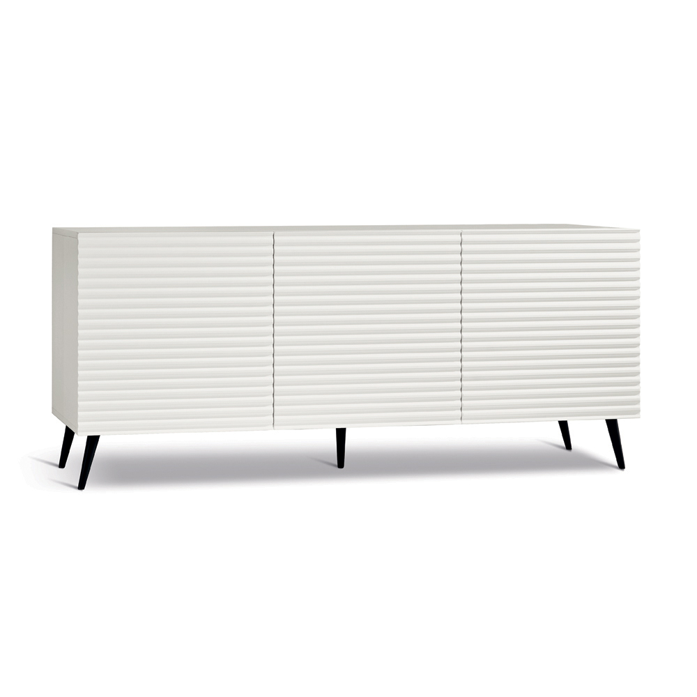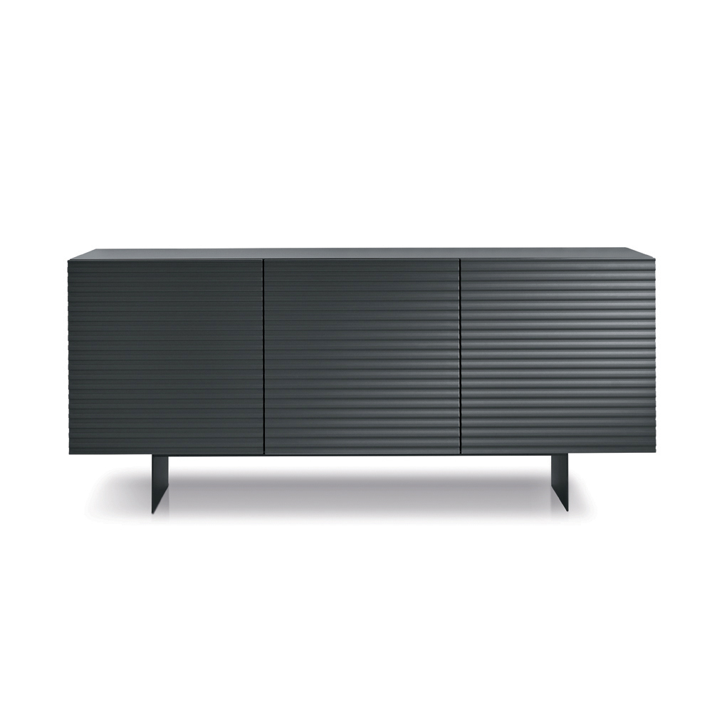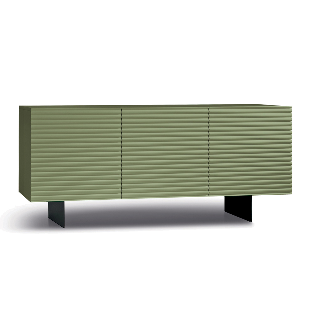 In Italien gefertigtes Designer-Sideboard mit geprägten, gestreiften Türen und lackiertem Metallgestell