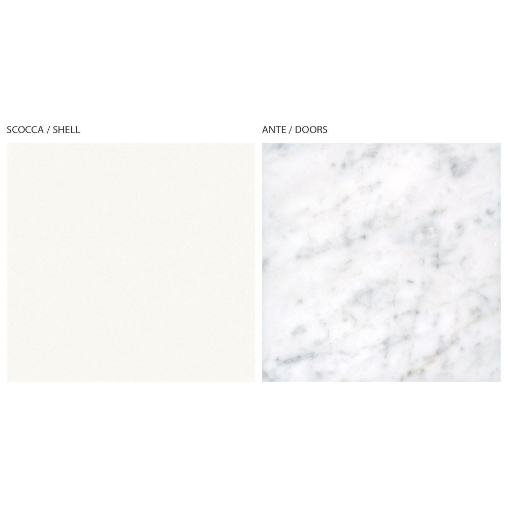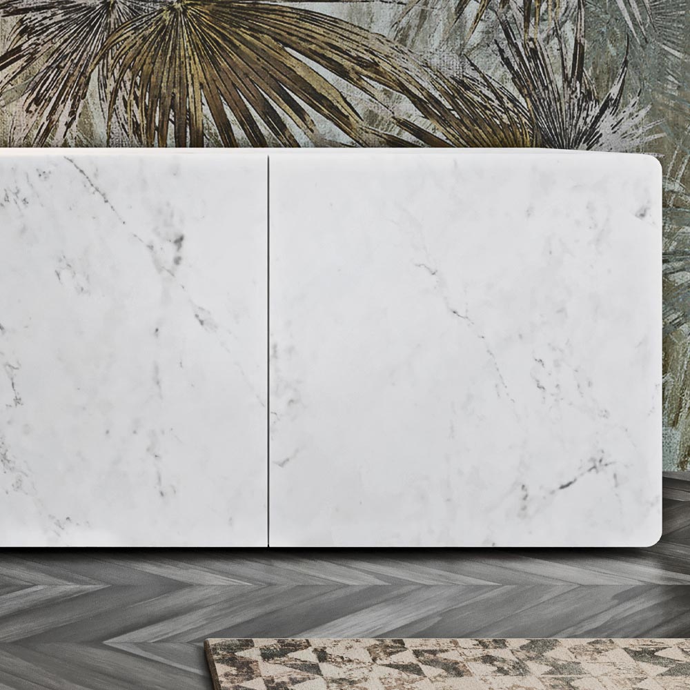 Carrara- Finish, vollständig in Italien hergestellt. Das Produkt ist Teil der neuen Linie moderner Produkte, die mit Respekt vor der Natur hergestellt werden. Dieses elegante Sideboard zeichnet sich durch die Funktionalität und hohe Qualität italienischer Handwerkskunst aus.