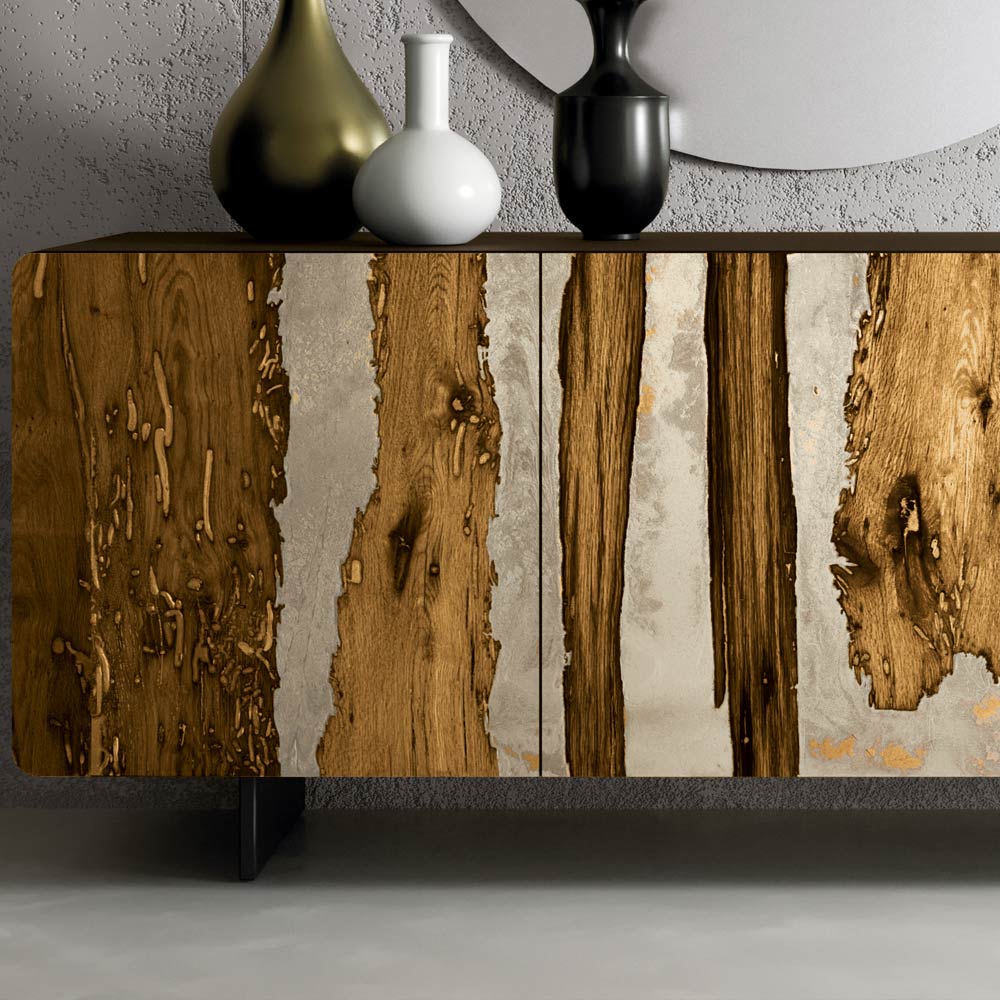 anthrazitfarbenem Eisen, vollständig in Italien hergestellt. Das Produkt ist Teil der neuen Linie moderner Produkte, die mit Respekt vor der Natur hergestellt werden. Dieses elegante Sideboard zeichnet sich durch die Funktionalität und hohe Qualität italienischer Handwerkskunst aus.