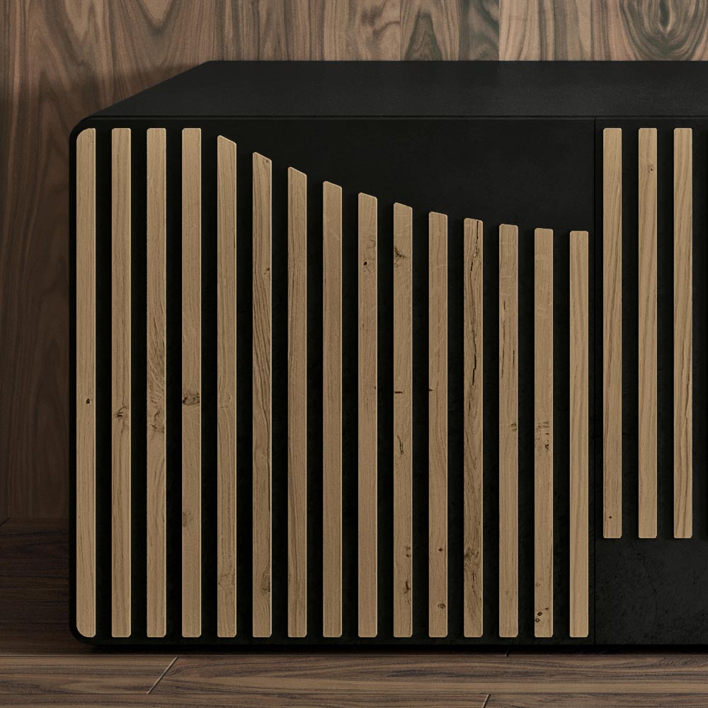 Wohnzimmer-Sideboard mit 3 Türen mit vertikalen Lamellen mit