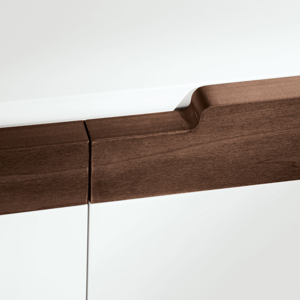 Griff aus massivem Tulpenholz, Canaletto- Finish, vollständig in Italien hergestellt.