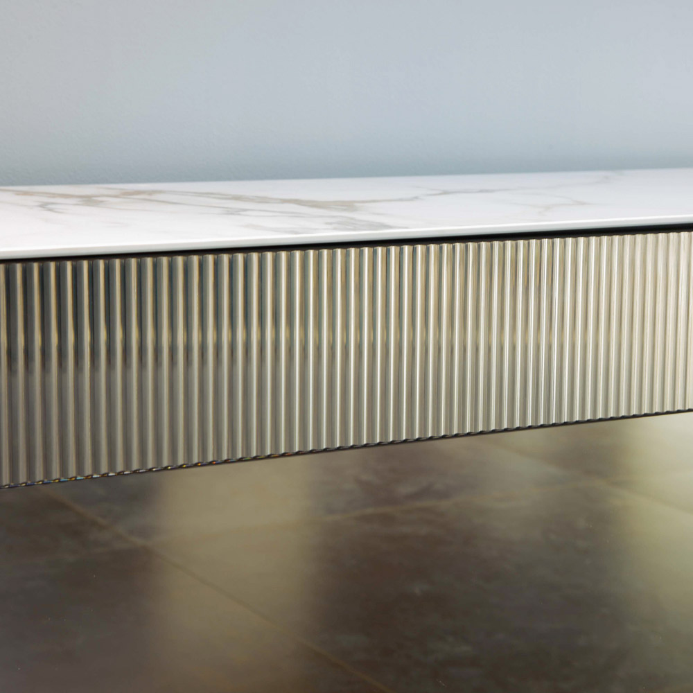 glänzender Keramik in Calacatta-Gold, Sockel aus