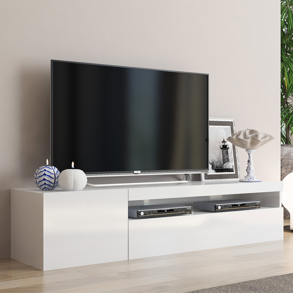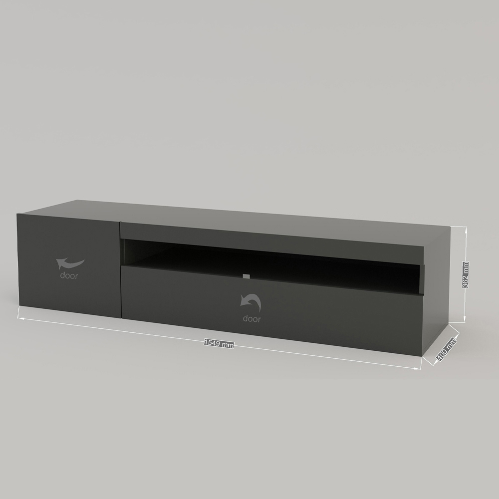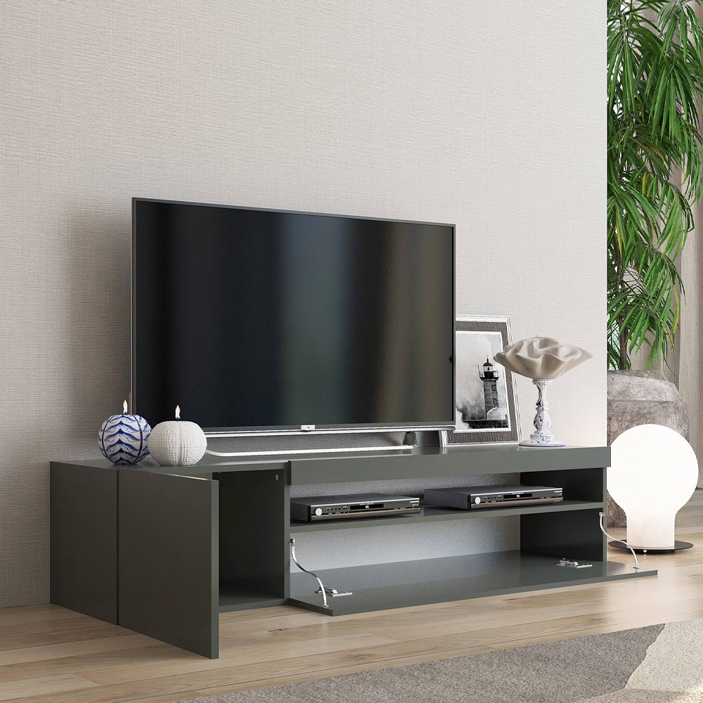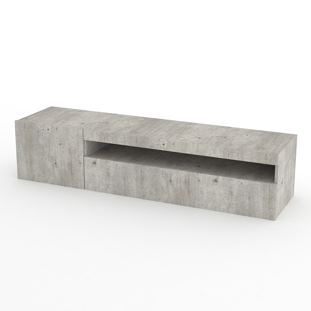 Der TV-Schrank für das Wohnzimmer zeichnet sich durch sein schlichtes und essentielles Design aus, das in verschiedenen Ausführungen erhältlich ist.