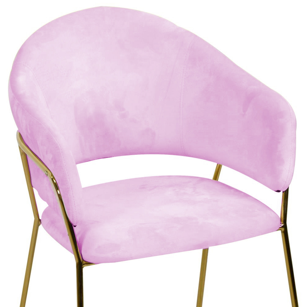 Sessel mit goldenem Metallgestell, Sitz und Rückenlehne aus rosa Samt.