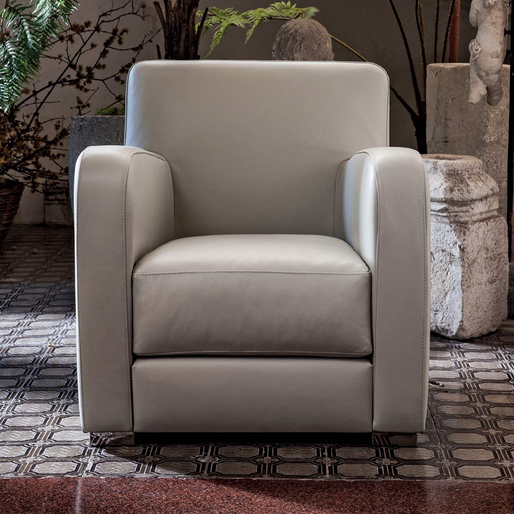 verchromtem Metall. Der Sessel ist ein Beispiel für Eleganz und Komfort. Sein modernes Design mit weichen und abgerundeten Linien macht ihn zu einer unverwechselbaren stilistischen Wahl. Die solide Struktur umfasst eine tiefe Sitzfläche und weiche Kissen und verspricht optimalen Komfort. Die hochwertige Lederpolsterung verleiht einen Hauch von Luxus, während die dünnen und raffinierten Füße den anspruchsvollen Look vervollständigen. Es ist ein Sessel, der zum Entspannen einlädt und Funktionalität und Ästhetik vereint. Ideal für moderne Umgebungen, die einen Hauch von Eleganz suchen.
