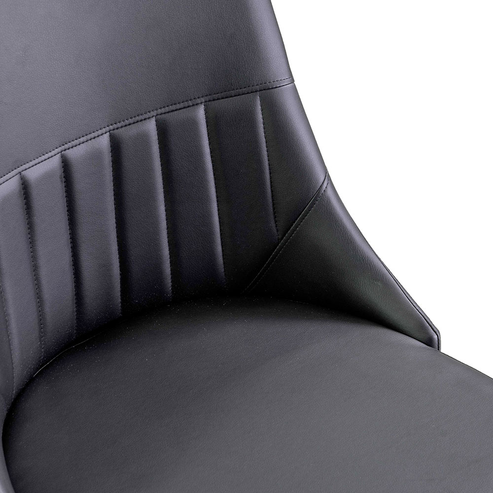 Hergestellt mit einem ergonomischen Sitz, gepolstert mit hochwertigem Öko-Leder, ist dieser Stuhl eine perfekte Kombination aus Komfort und zeitgenössischem Design. Die Polsterung, angereichert mit vertikalen Nähten, verleiht ihm einen raffinierten Look, der perfekt in moderne Esszimmer, elegante Büros oder raffinierte Kontrakträume passt.