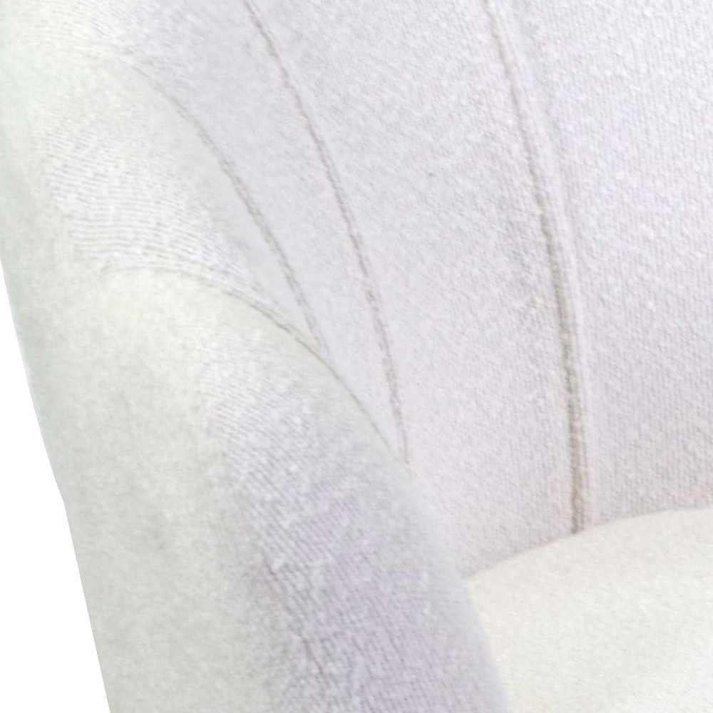Mit seinem schalenförmigen Design kombiniert dieser Sessel vintage Eleganz und modernen Stil. Der Stoff, der sich weich und luxuriös anfühlt, vermittelt ein Gefühl der Veredelung und des umhüllenden Komforts, was ihn perfekt macht, um ein Wohnzimmer, ein Schlafzimmer oder ein Arbeitszimmer mit einem Element des zeitlosen Glamours zu bereichern.