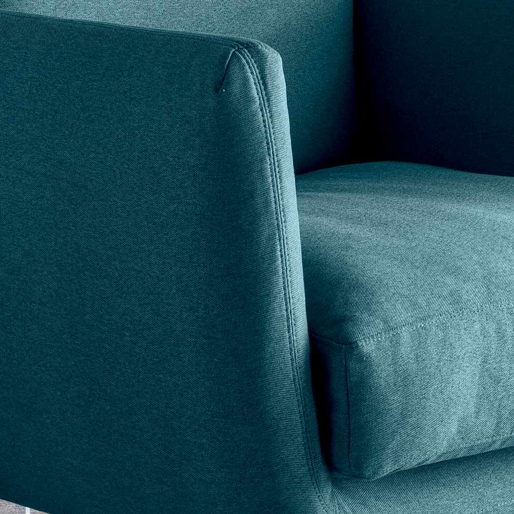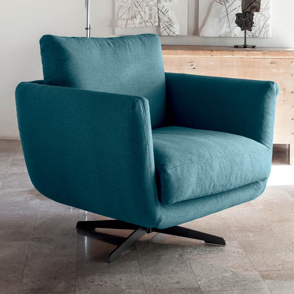 anthrazitfarben lackiertem Metall. Der Sessel stellt eine harmonische Verschmelzung von Komfort und modernem Stil dar. Das elegante Design mit weichen und abgerundeten Linien vermittelt ein Gefühl von Gemütlichkeit, während die robuste Struktur für Langlebigkeit sorgt. Die hochwertige Stoffpolsterung verspricht zusammen mit den großen und bequemen Kissen ein entspannendes Sitzerlebnis. Die dünnen und geometrischen Füße verleihen eine raffinierte Note und machen den Sessel zu einem faszinierenden Designstück. Dieser Sessel ist ideal für alle, die eine Einrichtungslösung suchen, die moderne Ästhetik und tadellosen Komfort vereint.