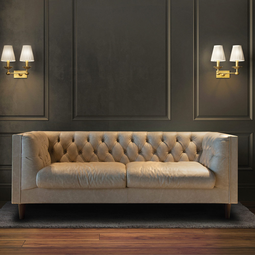 Verfügbare Ausführungen:- beiges Vintage-Antikleder mit Füßen in Walnuss-Finish, nicht abnehmbare Struktur, abnehmbare Sitz- und Rückenkissen