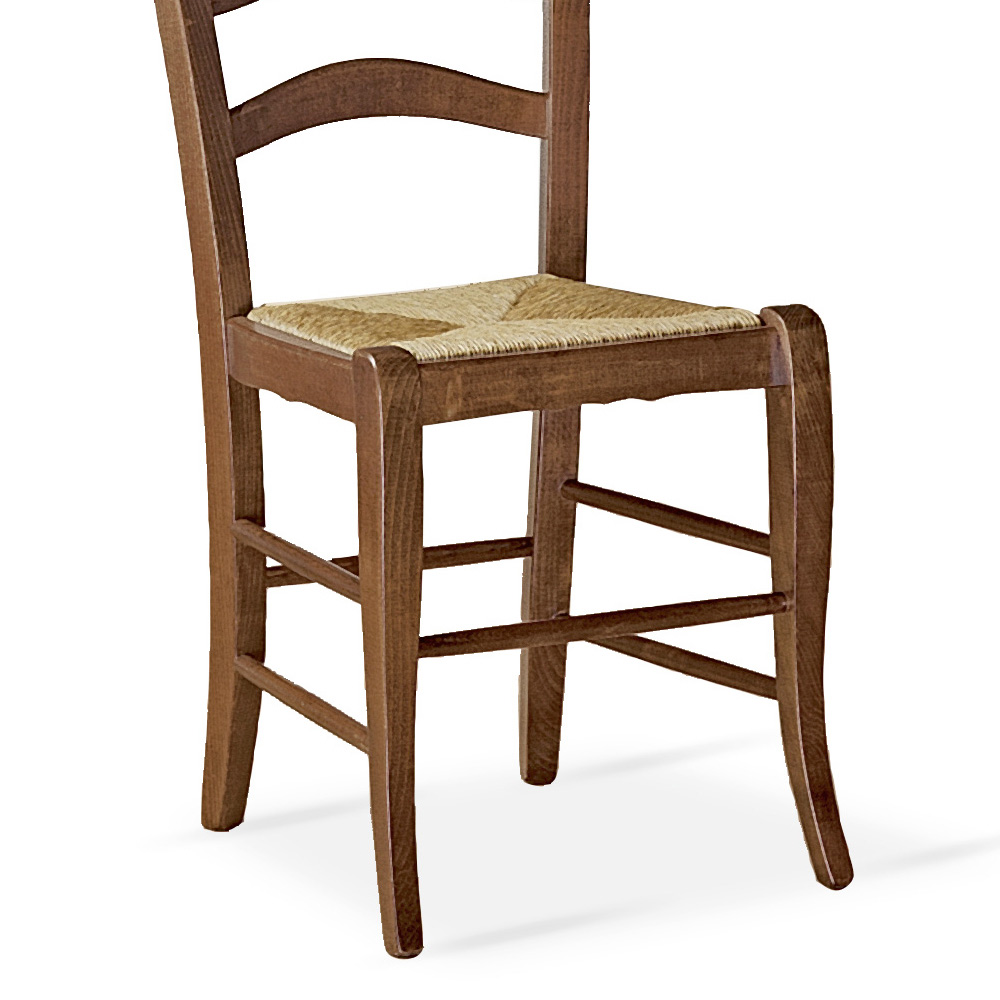Moderner Stuhl für Innenräume mit Gestell aus walnussfarben gebeizter Buche Sitzung aus Stroh.