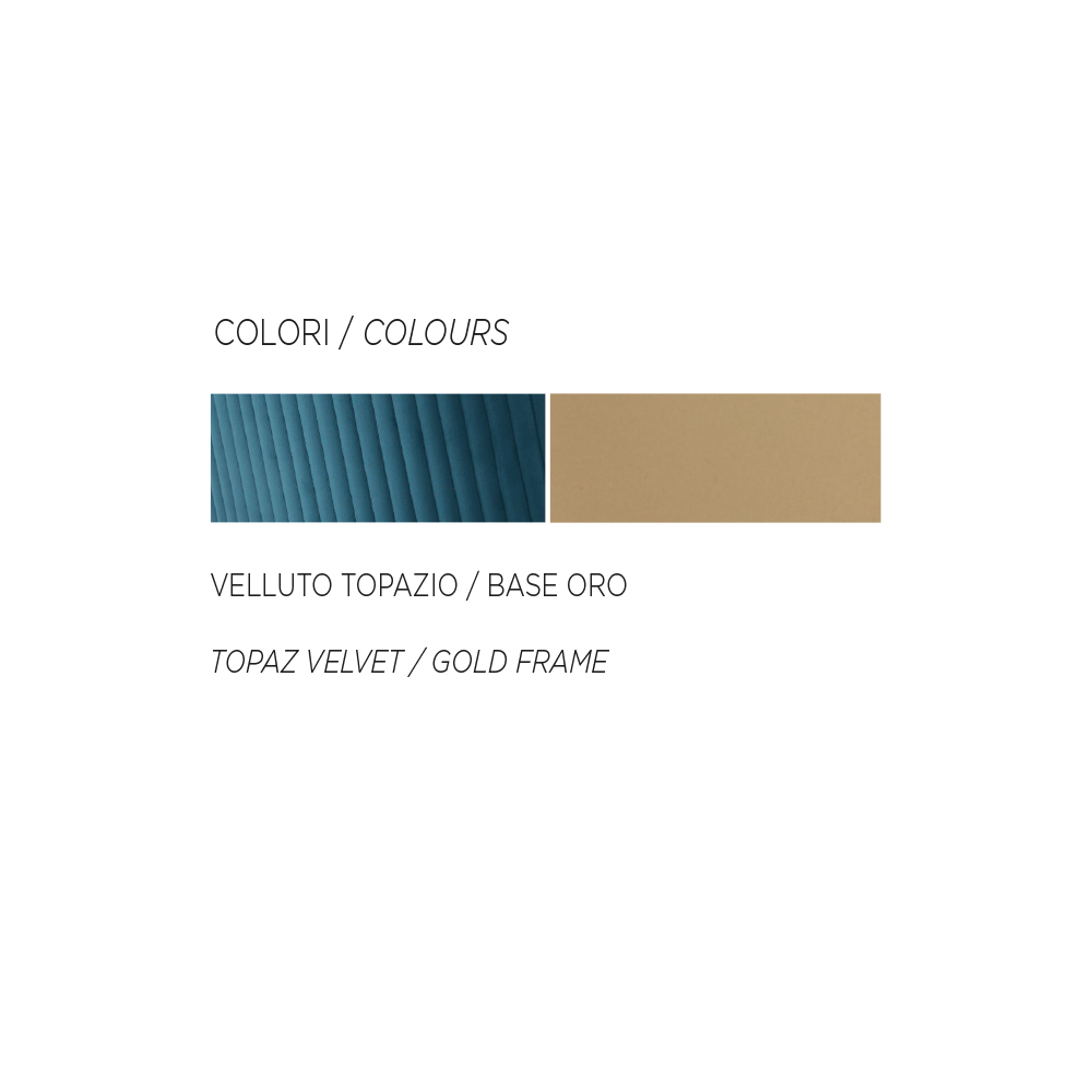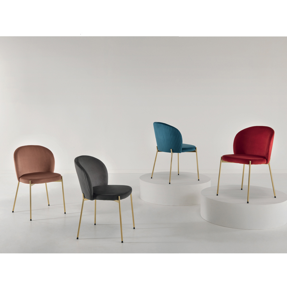 Wohnzimmerstuhl mit gepolstertem Sitz, bezogen mit Samt und goldener Metallstruktur . Ein Möbelstück mit einem essentiellen Stil, der in einem zeitgenössischen Schlüssel neu aufgelegt wurde, um einen originellen Sitz durch die Kombination von modernen und innovativen Materialien und Farben zum Leben zu erwecken. Das Ergebnis ist eine einzigartige Einrichtungslösung, die Funktionalität und Vielseitigkeit verbindet, um Ihre Wohnräume mit Persönlichkeit auszustatten.