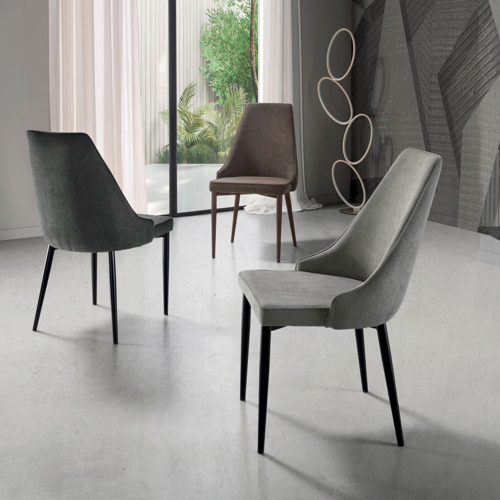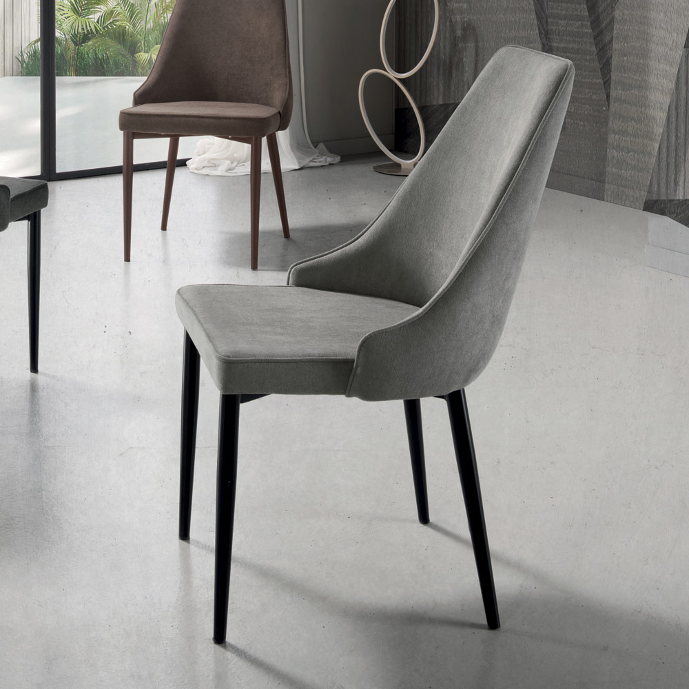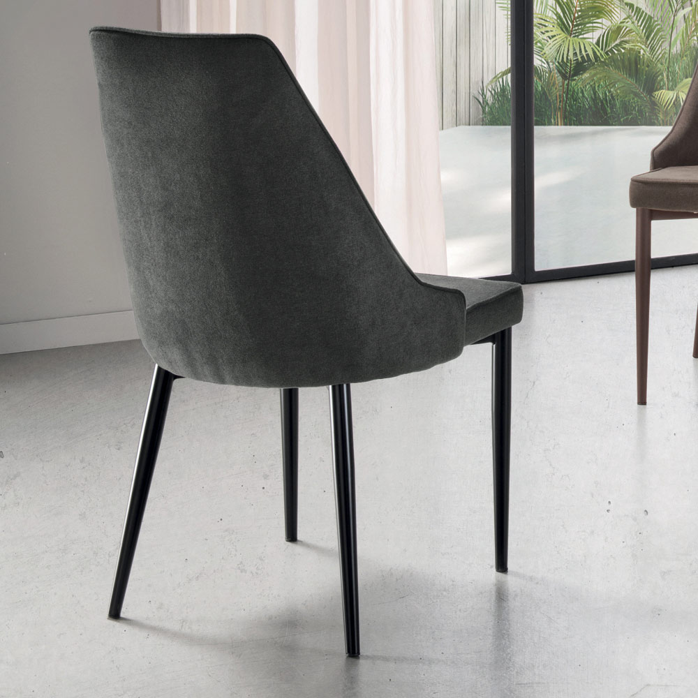 schlanke und sich verjüngende Silhouette prägt zusammen mit der besonderen Form des Stoffbezugs die gesamte Figur des Sitzes, was ihn in seiner Art einzigartig macht und seine Ästhetik auf originelle Weise bereichert.