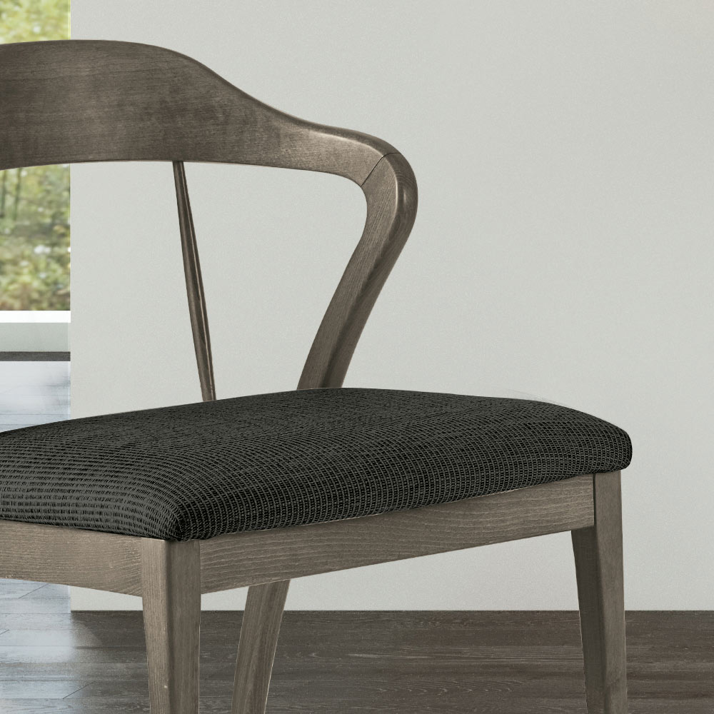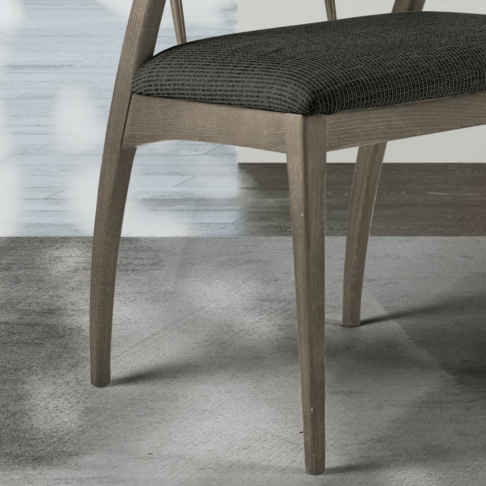Holzstuhl mit Querstreben und gepolstertem Sitz aus Made in Italy-Stoff