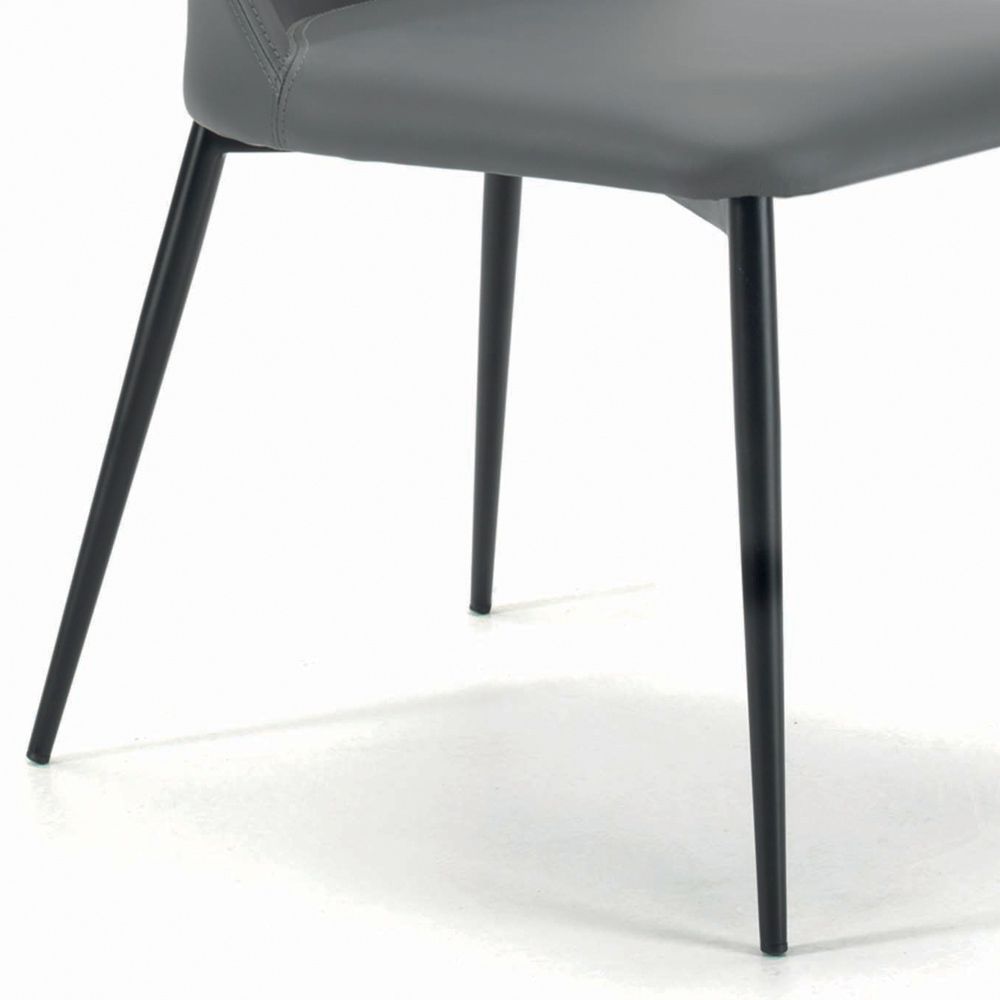 Wohnzimmerstuhl mit Sitz und Rückenlehne aus Stahl, komplett mit Kunstleder bezogen und Beinen aus Stahl oder Eschenholz. Wesentlichkeit und Minimalismus sind die besonderen Merkmale dieses Einrichtungsaccessoires im zeitgenössischen Stil , das für diejenigen gedacht ist, die schlichte Einrichtung lieben, aber gleichzeitig eine starke visuelle Wirkung haben möchten . Die ästhetische Leichtigkeit seiner Formen ist seine größte Stärke, die es ihm ermöglicht, sich in jeden Kontext einzufügen und stets einzigartig und originell zu wirken.