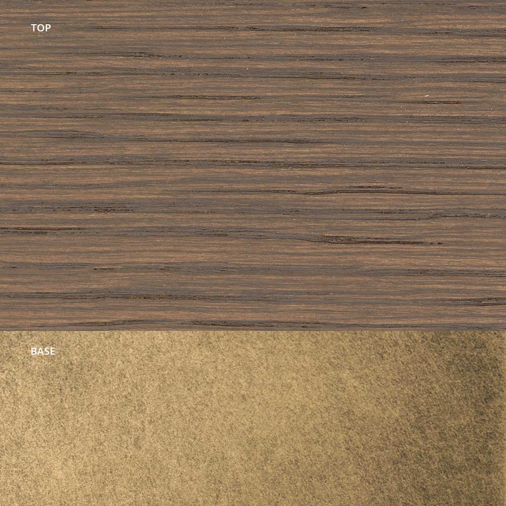 Die Platte dieses Tisches ist aus santiagofarbener Asteiche, angereichert mit einem 2,5 cm dicken Metalleinsatz, und sein Untergestell ist aus Eiche. Seine Basen sind durch trübe bronzefarbene Metallelemente von cm miteinander verbunden. 42x42x7, das in einer Vielzahl von verschiedenen Farben lackiert werden kann.