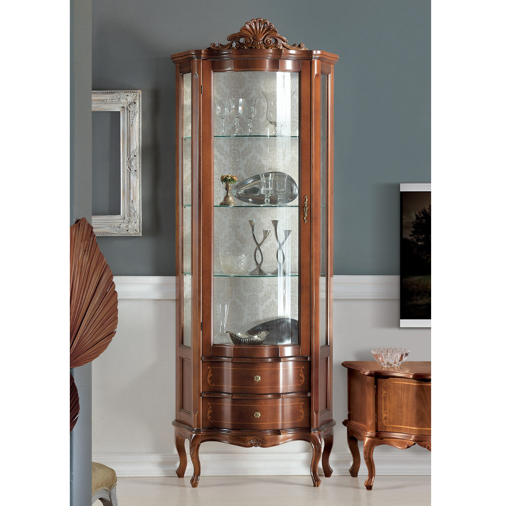 Wohnzimmervitrine mit Tür und 2 Schubladen aus Holz Made in Italy.