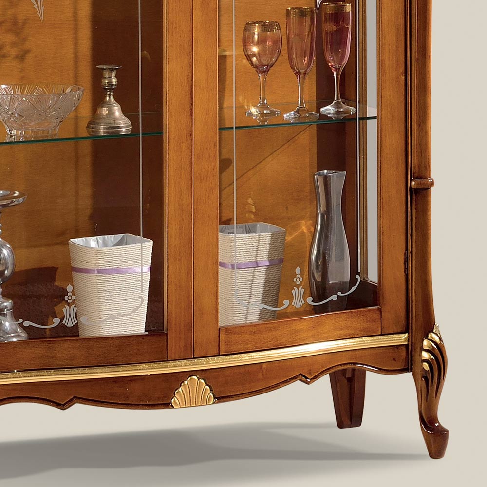 Wohnzimmervitrine im klassischen Stil mit Struktur aus Holz mit Bassano-Nussbaum und Antikgold-Finish mit Siebdruckglas. Eine einzigartige und raffinierte Ergänzung, die vollständig in Italien von erfahrenen Handwerksmeistern hergestellt wird, Meister der Kunst, die jede Ergänzung mit Weisheit und Geschmack für Eleganz vervollständigen. Die Produktion erfolgt unter Verwendung hochwertiger Materialien und mit der größten Sorgfalt und Professionalität, die die Produkte Made in Italy auszeichnet .
