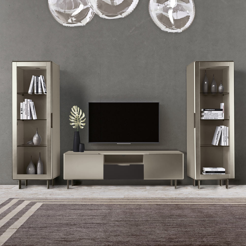 Wohnzimmervitrine mit MDF-Nickel-Finish, hergestellt in Italien