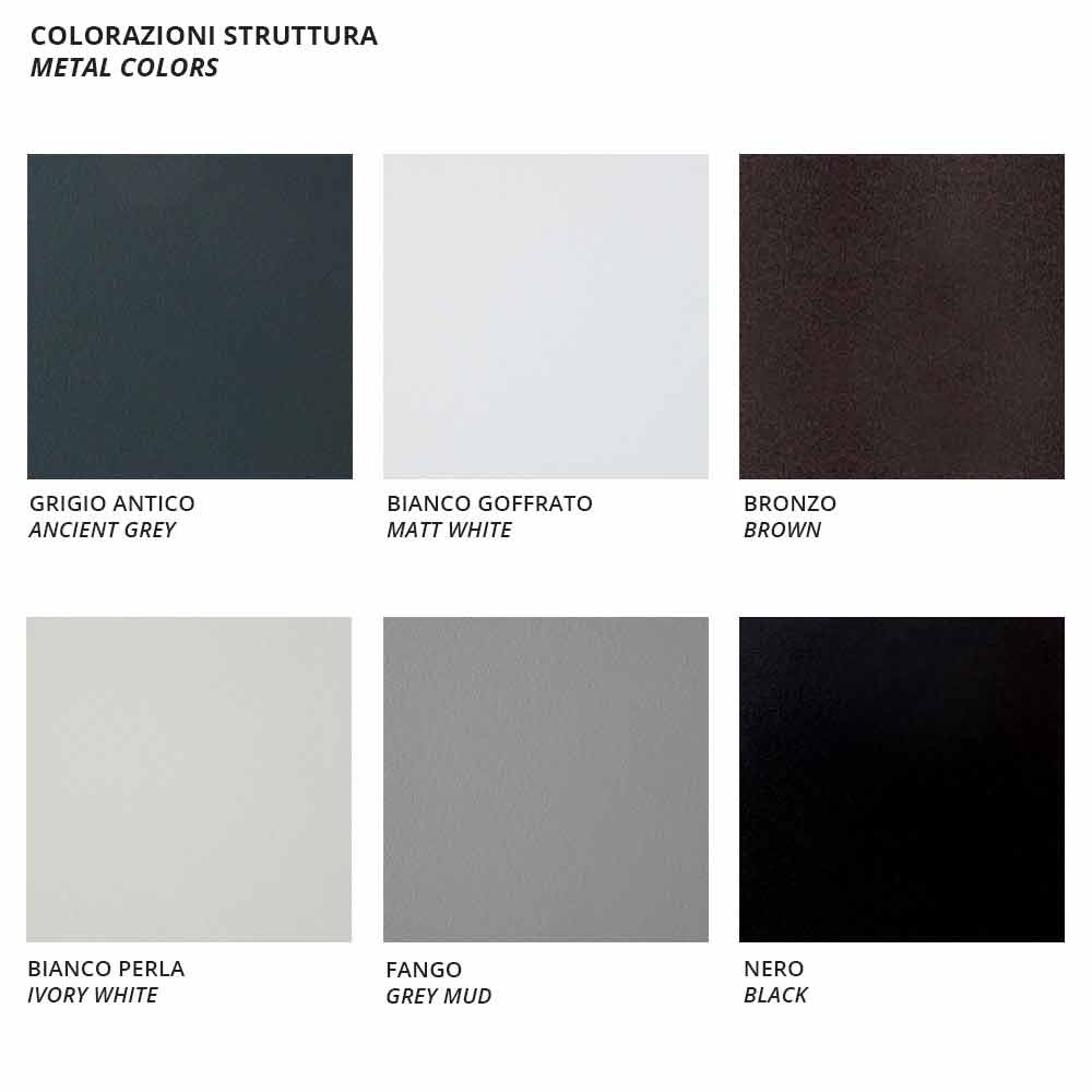 pulverbeschichtetem, verzinktem Eisen, das mit duroplastischen Pulvern lackiert ist und sich ideal für die Herstellung von Outdoor-Produkten eignet, während Sitz- und Rückenkissen aus 100 % gefärbtem Acrylgewebe bestehen. Die beiden verwendeten Materialien verleihen dem Produkt hervorragende Festigkeit und Langlebigkeit sowie