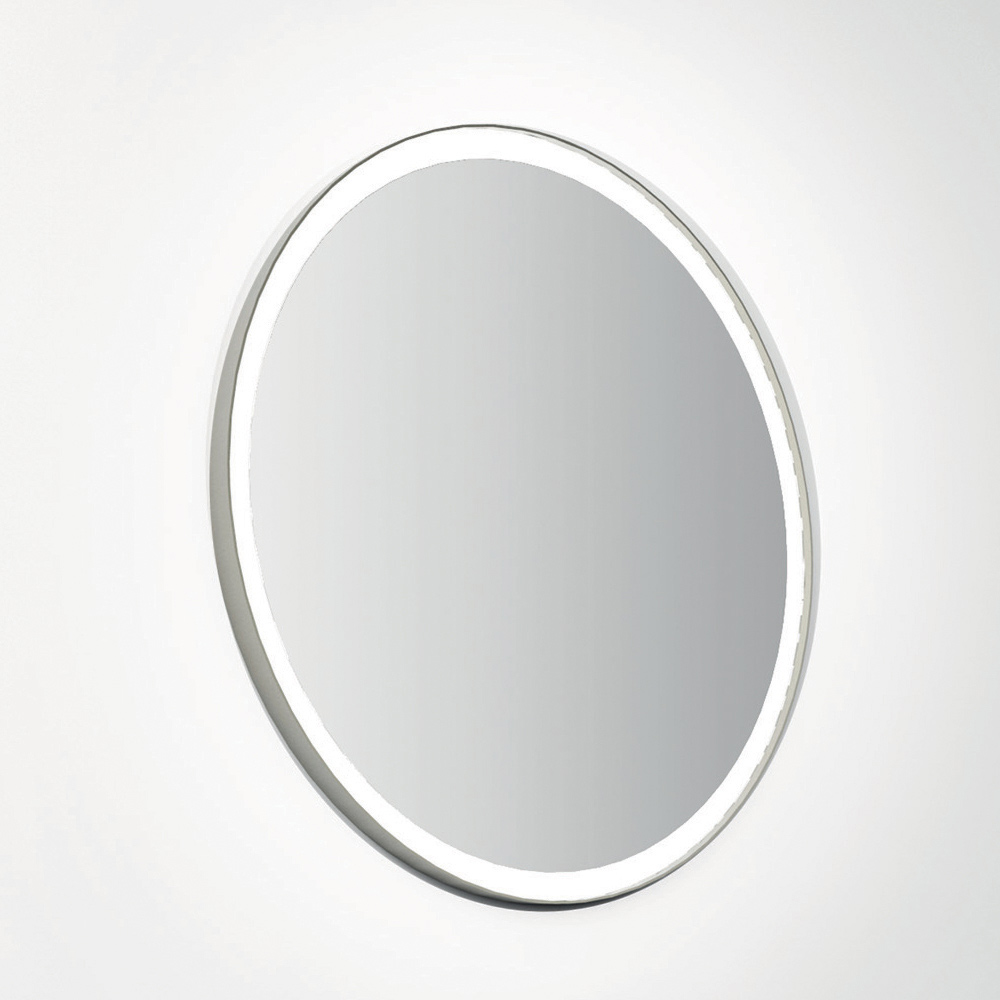 Abgerundet wird die Komposition durch den runden Spiegel mit mattschwarz lackiertem Metallrahmen und praktischer