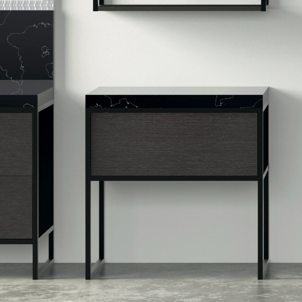 Schwarze Badmöbelkomposition mit Waschbecken, Seitenschublade und Handtuchhalter, hohe Qualität made in Italy.