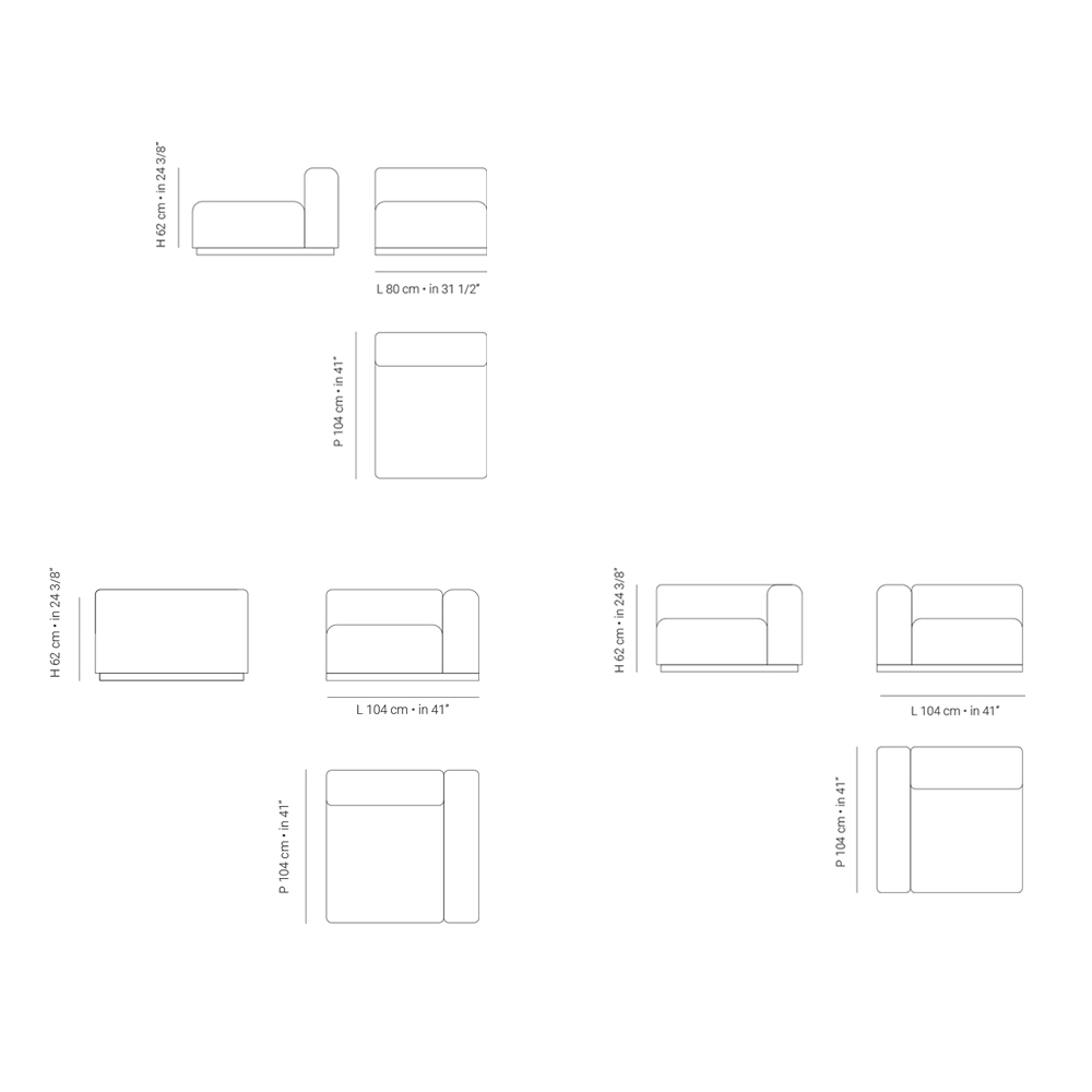 - linkes Eckelement: L 104 x T 104 x H 62 cm