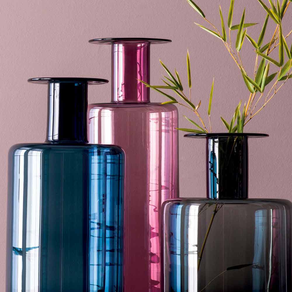 Komposition aus 3 dekorativen Indoor-Vasen aus geräuchertem, blauem und amethystfarbenem