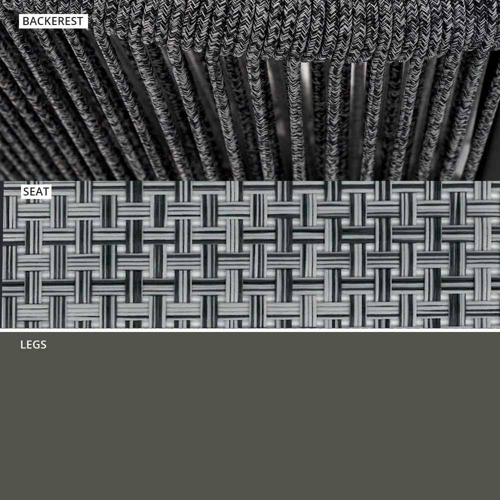 Smart wurde mit einer lackierten Aluminiumstruktur , einem Sitz aus technischem VAR # TEX-Stoff und einer Rückenlehne aus synthetischem VAR # TEX-Kabel (technischer Stoff aus PVC) hergestellt.