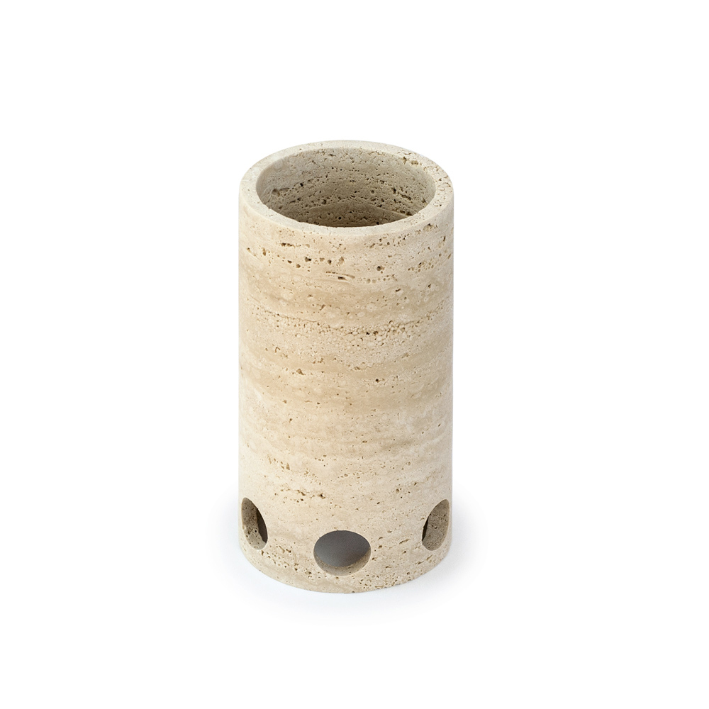 Vase oder Kerzenhalter aus satiniertem Marmor mit Travertin-Finish, komplett in Italien hergestellt.