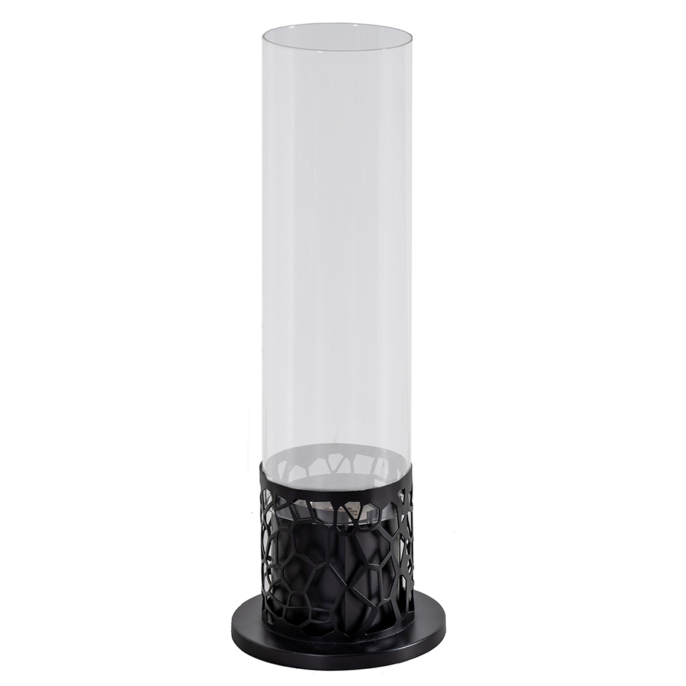 Die Struktur besteht aus Metall und das gehärtete Glas schützt die Flamme vor möglichen Windböen und hebt sie hervor; Dadurch ist es auch für den Außenbereich geeignet.